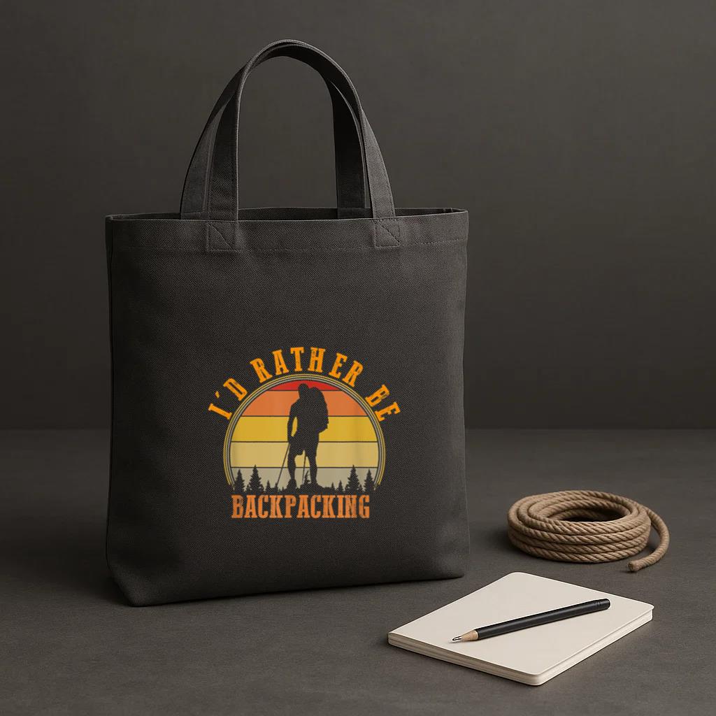 • Id Rather Be Backpacking Hiking Camping Tote Canvas Bag