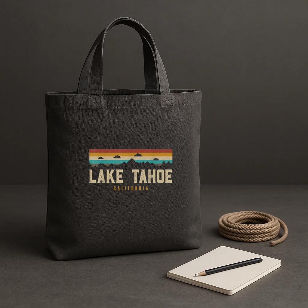 • Lake Tahoe Vintage Mountains Hiking Camping California Tote Canvas Bag