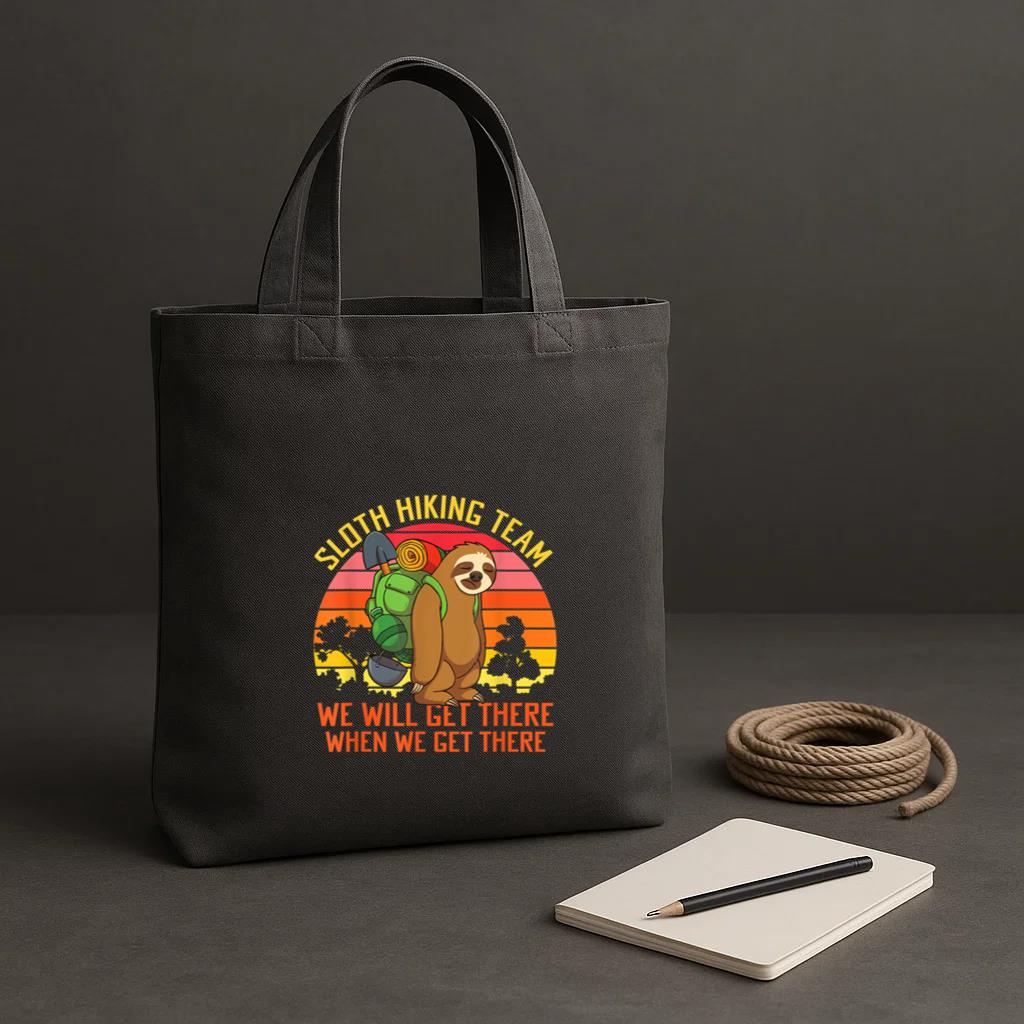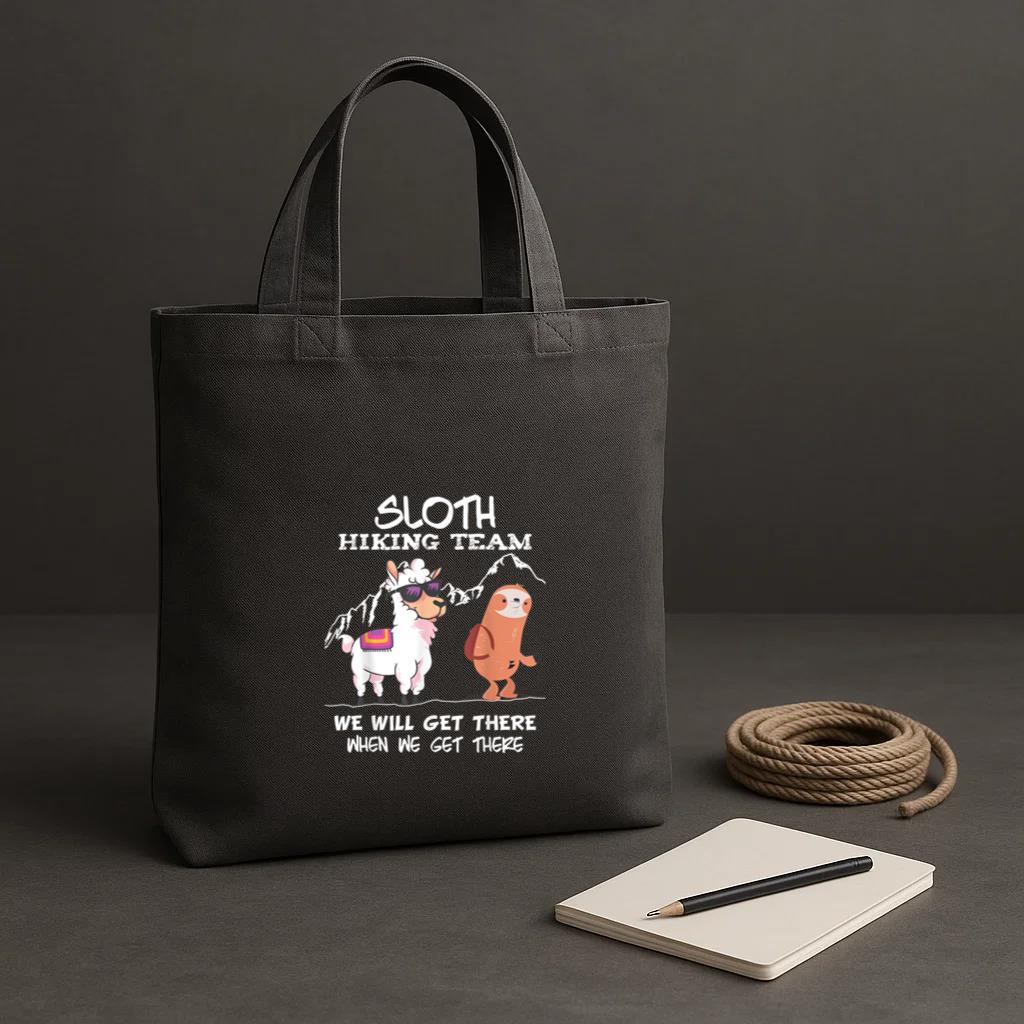 • Sloth Hiking Team Well Get There When We Get There Tote Canvas Bag