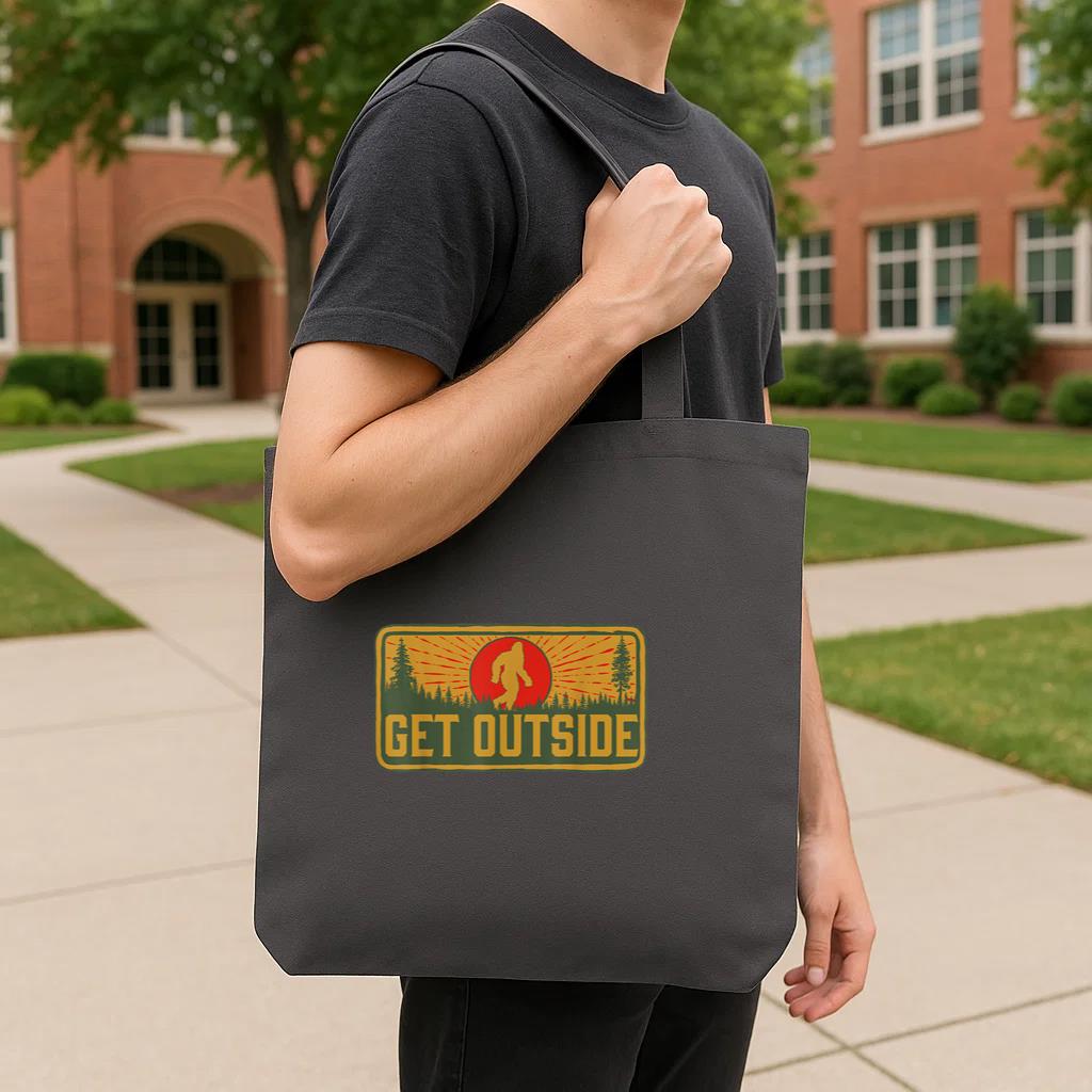 Chic, durable, and reusable, this Get Outside Vintage Bigfoot Hiking Tote Canvas Bag canvas tote bag is your daily go-to or a thoughtful gift for any occasion.