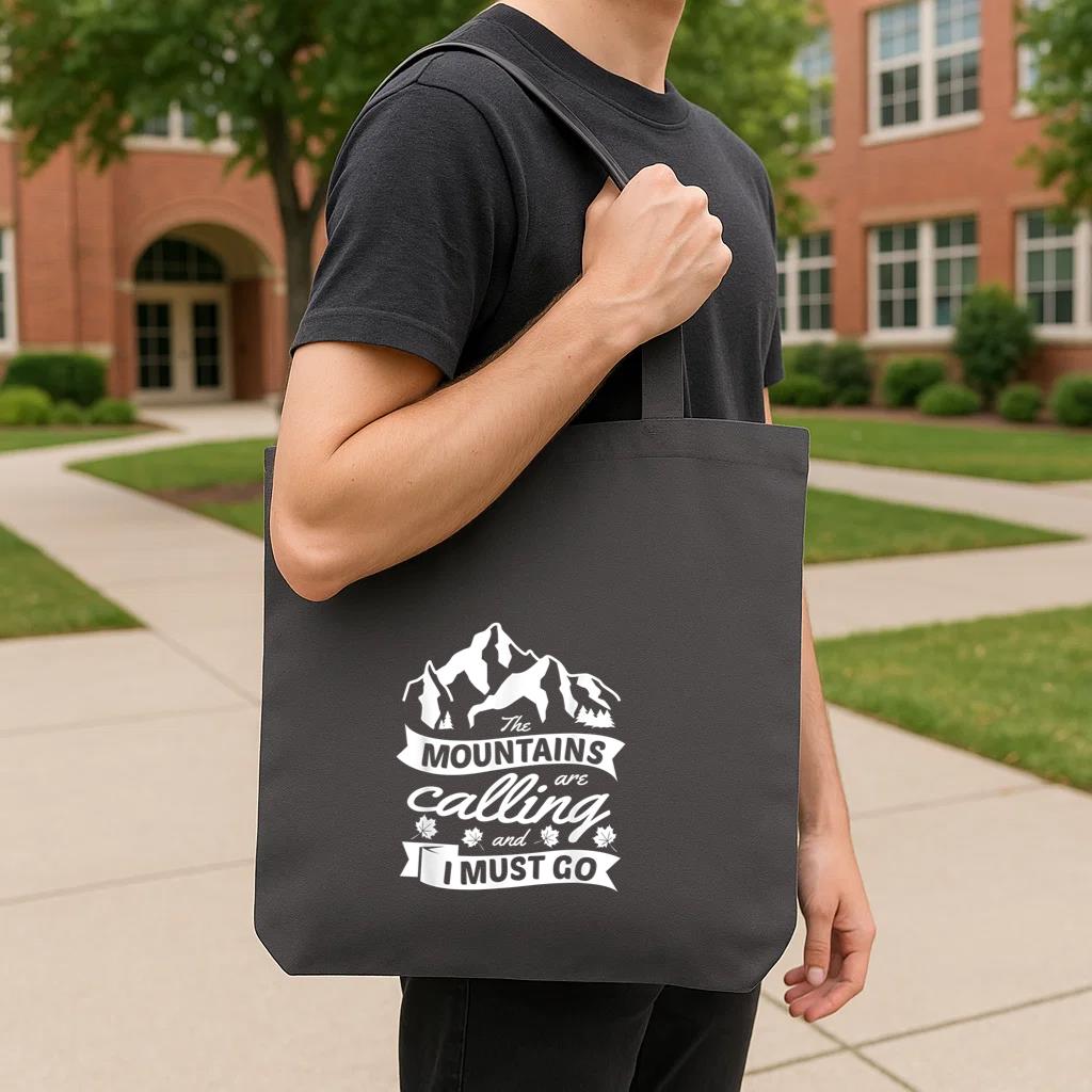 Chic, durable, and reusable, this Mountains Are Calling Hiking Camping Tote Canvas Bag canvas tote bag is your daily go-to or a thoughtful gift for any occasion.