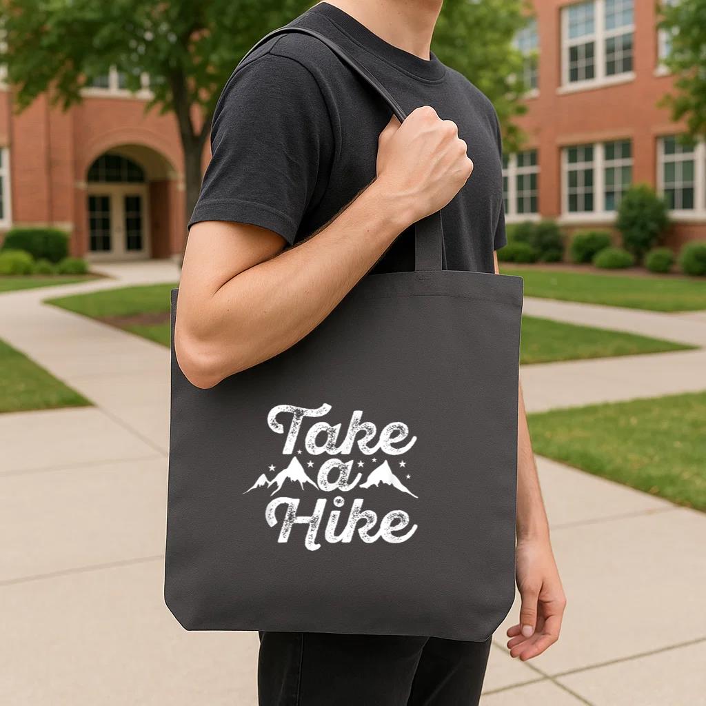 Chic, durable, and reusable, this Take A Hike Hiking Camping Tote Canvas Bag canvas tote bag is your daily go-to or a thoughtful gift for any occasion.